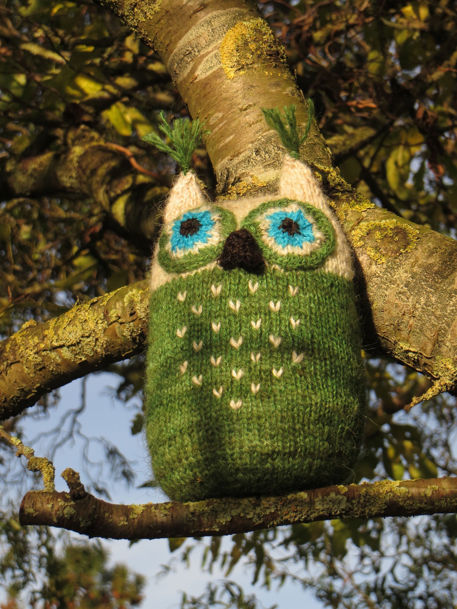 De uil is alleen geschikt voor binnen (voor de foto is hij even in de boom gaan zitten).
